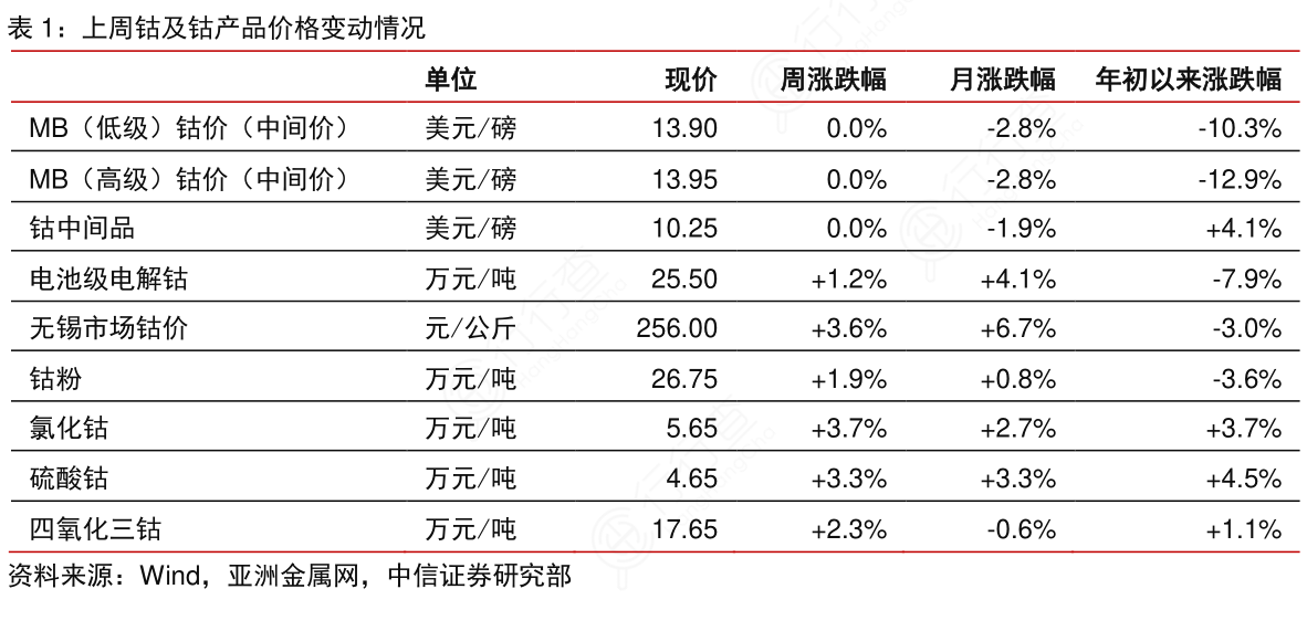钴的最新价格动态