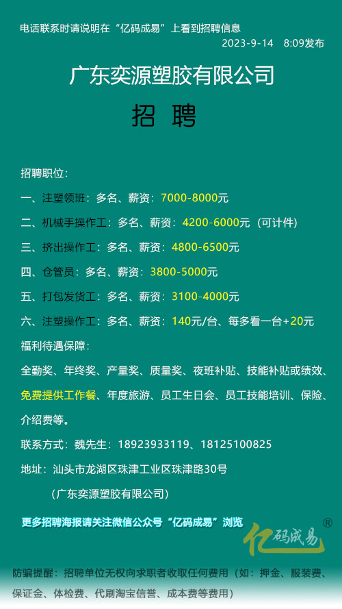 摘要:深圳正在招聘注塑领班,相关招聘信息引发关注。招聘过程中还发生了一些小趣事,为这一职位的招聘增添了些许趣味。该职位需要经验丰富的领班来负责注塑生产线的日常管理,确保生产顺利进行。这一职位对于寻求在深圳发展注塑行业的人才来说是一个很好的机会。